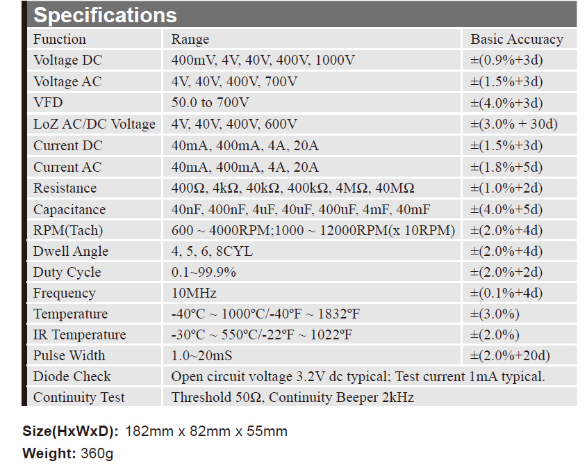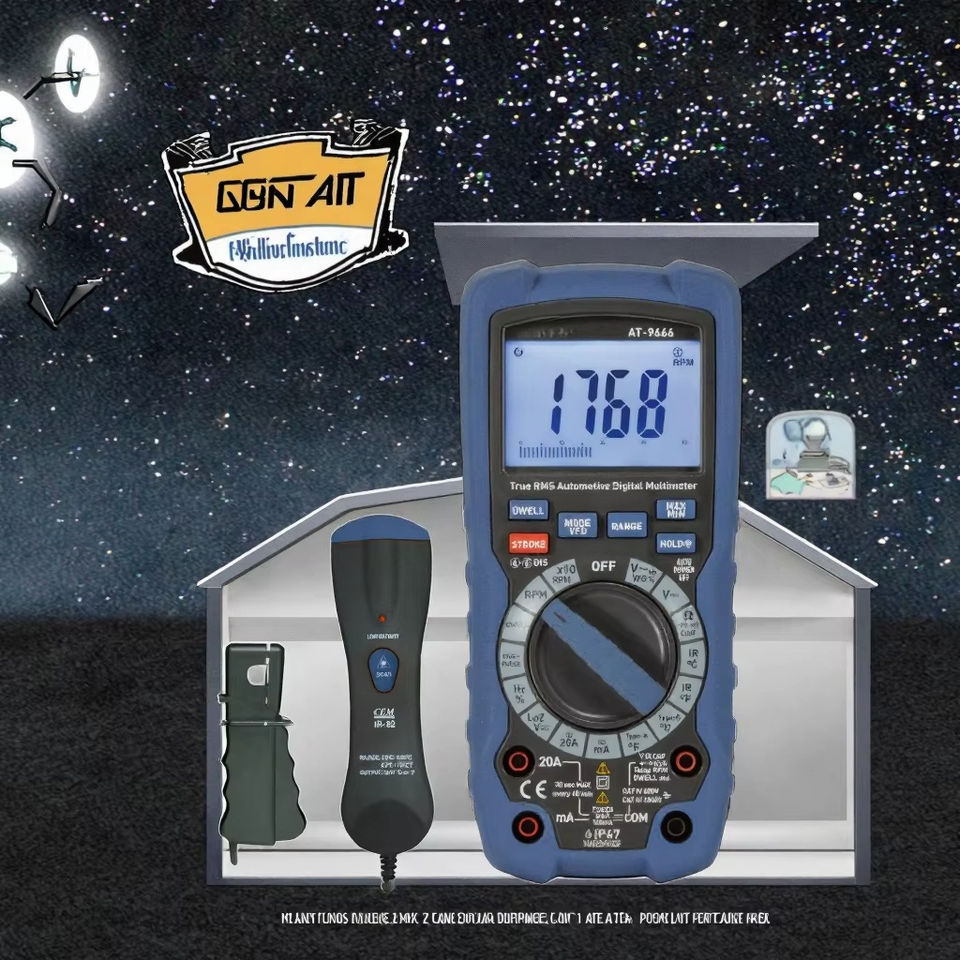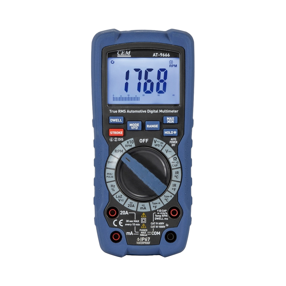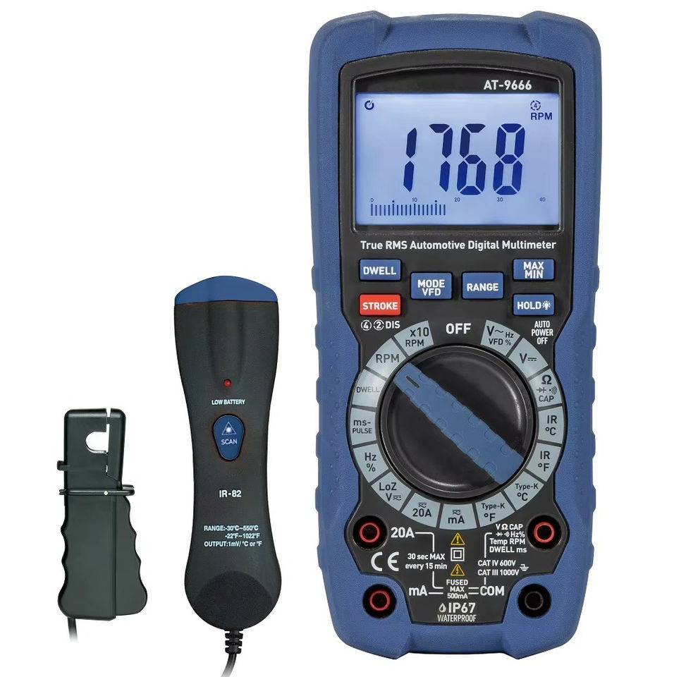 Multímetro Digital Automotriz AT-9666 con Medición de RPM, 14 Funciones, Probador de Motor