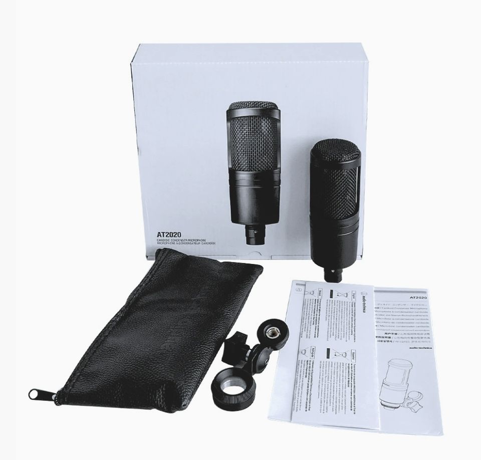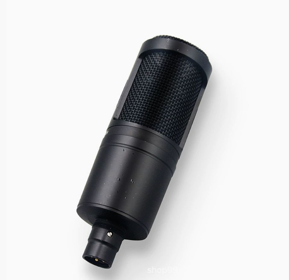 Micrófono condensador cardioide avanzado AT2020 para grabación de karaoke y actuaciones en vivo, superventas con material metálico