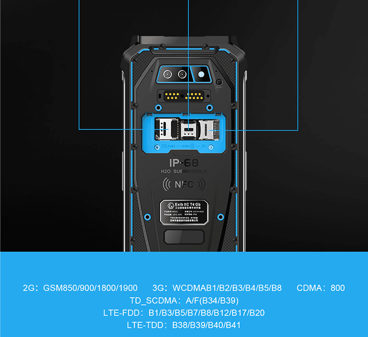 Teléfono Inteligente Resistente al Agua y a los Golpes con Certificación ATEx, IP68, CDMA, LTE, GSM, Walkie Talkie, con Función RFID y NFC