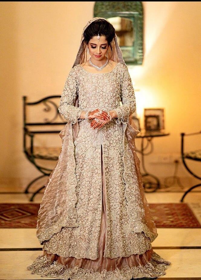ATIYA LIBAS tradicional indio/paquistaní nupcial Anarkali Lehenga Choli vestido pesado Zardozi bordado Material de acetato