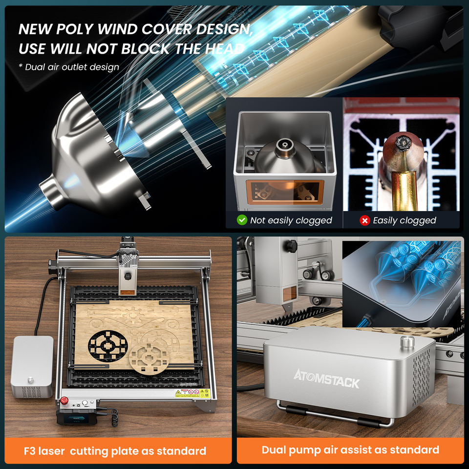 ATOMSTACK S30 X30 Pro 160W Control inteligente de alta potencia con asistencia de aire Máquina CNC Máquina de grabado láser de metal acrílico de madera