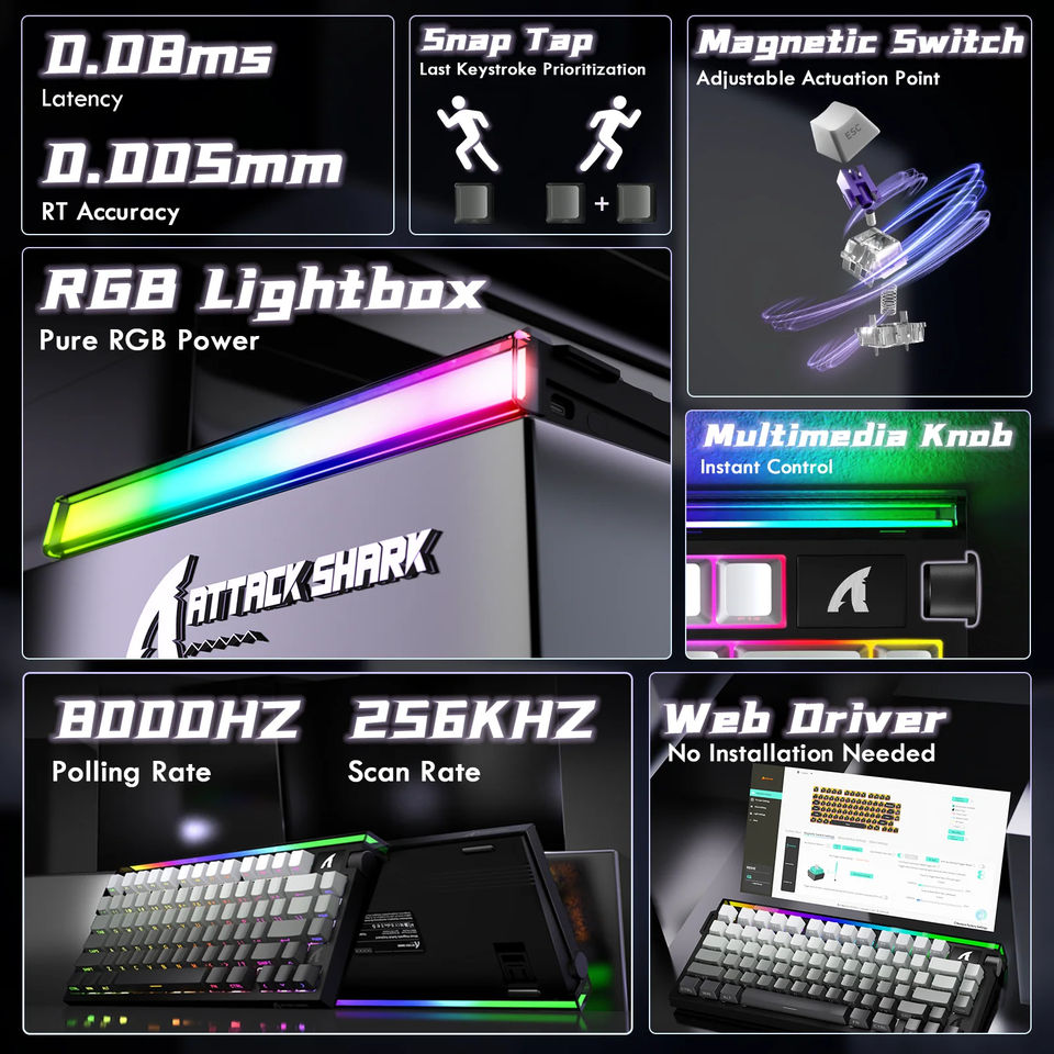 Teclado ATTACK SHARK R85 HE con interruptores magnéticos de respuesta rápida y caja de luz personalizada, proveedor ATTACK SHARK en AliExpress para computadoras