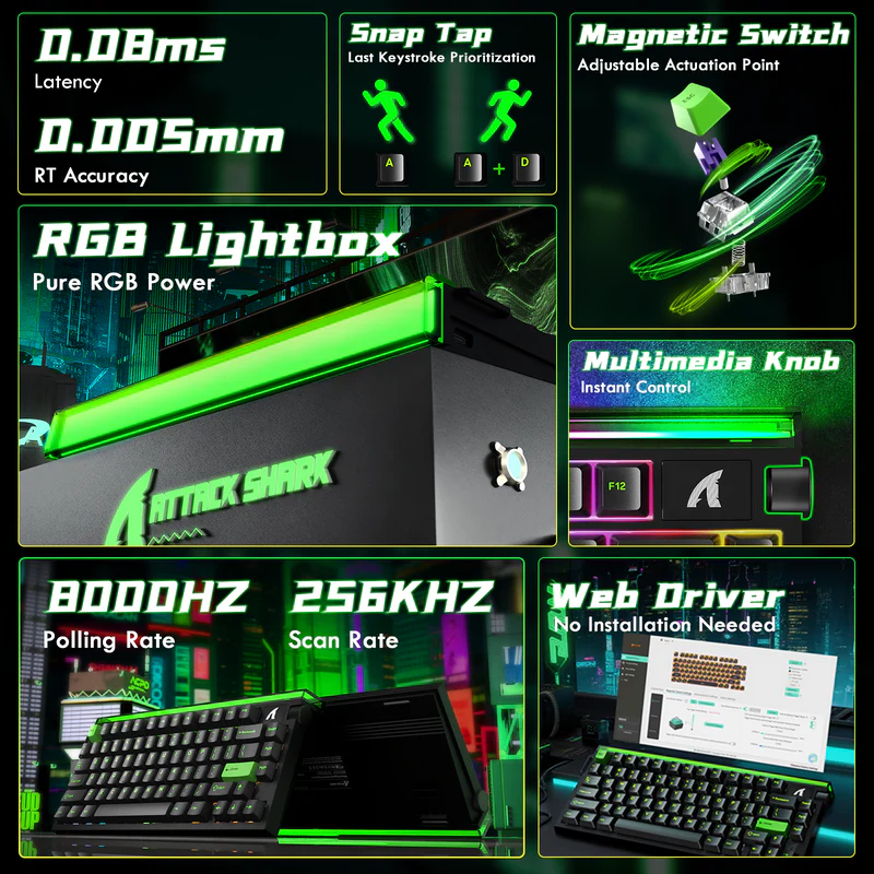 Teclado Mecánico para Juegos ATTACK SHARK R85 HE con Cable, Respuesta Rápida, RGB y Caja de Luz Personalizable