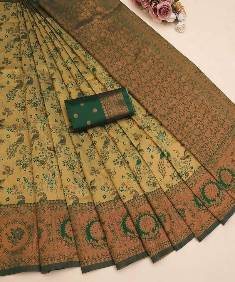 Work:Weaving, Jacquard, Banarasi silk, Cotton silk