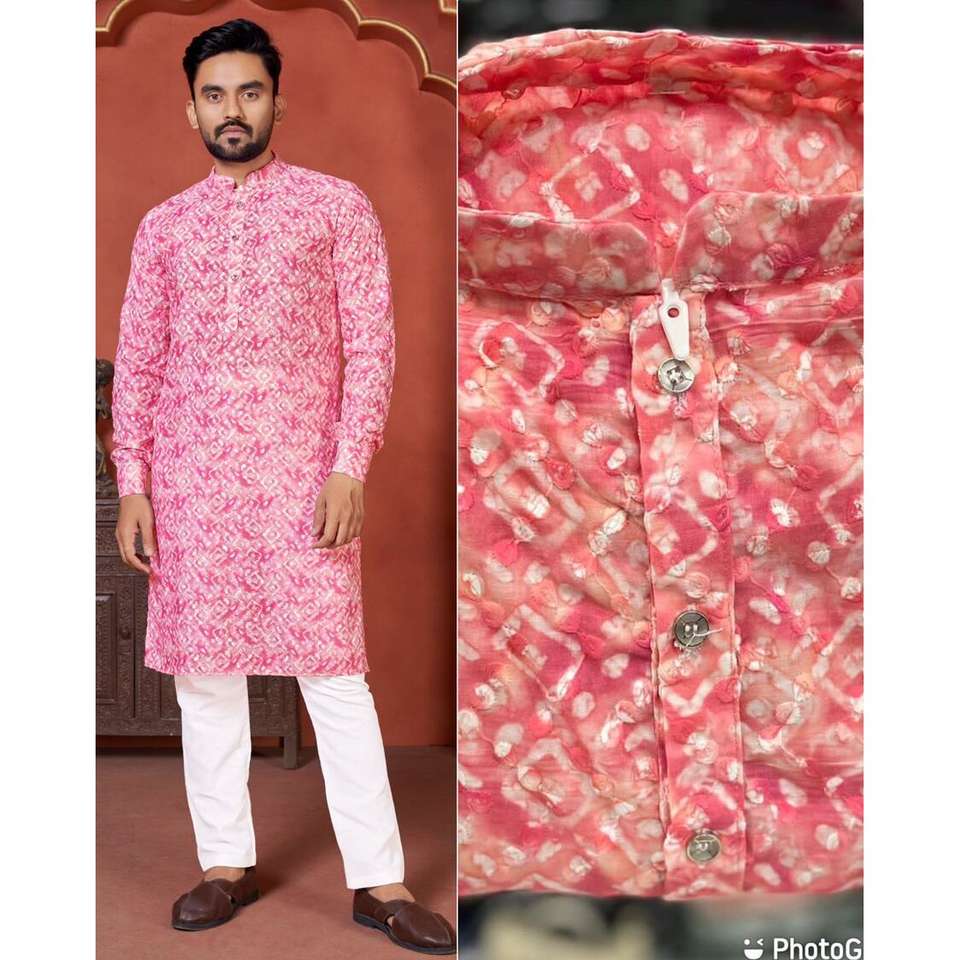 ATRACTIVO POLLO DE ALGODÓN CON SECUENCIA IMPRESIÓN DIGITAL TRABAJO HOMBRE KURTA PIJAMA ROSA Achkan Bandhgala Sherwani