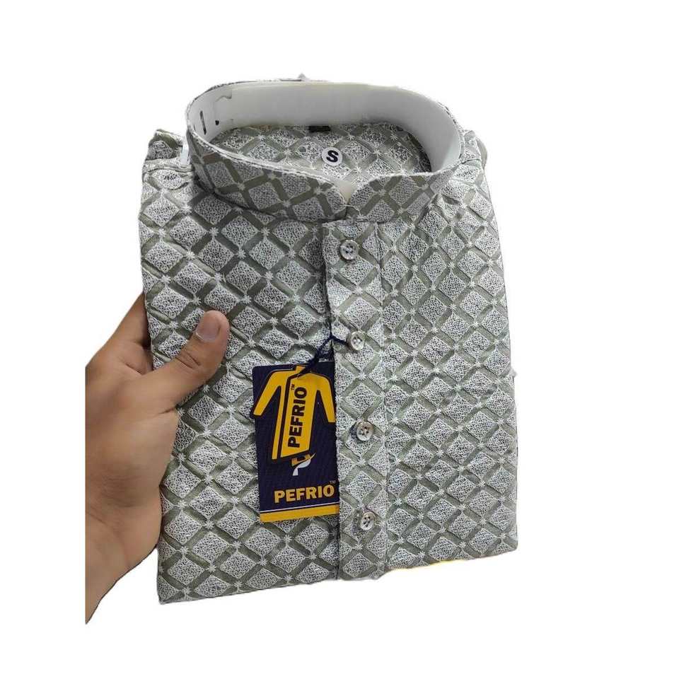 ATRACTIVO ALGODÓN BORDADO TRABAJO HOMBRE KURTA PIJAMA GRIS