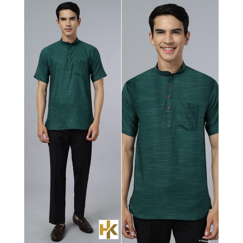 ATRACTIVO ALGODÓN ESTAMPADO TRABAJO HOMBRE CORTO KURTA SOLO VERDE