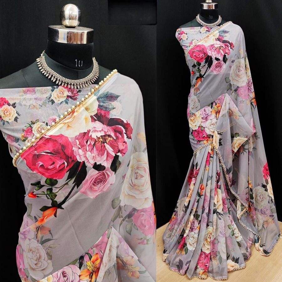 ATRACTIVE GEORGETTE TRABAJO DE IMPRESIÓN DIGITAL SAREE CON BLUSA DESCOSADA GERY