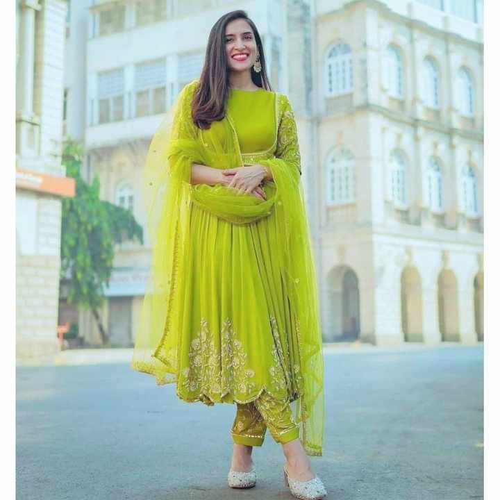 Atractivo Vestido de Georgette con Bordado y Dupatta, Color Verde Lorco