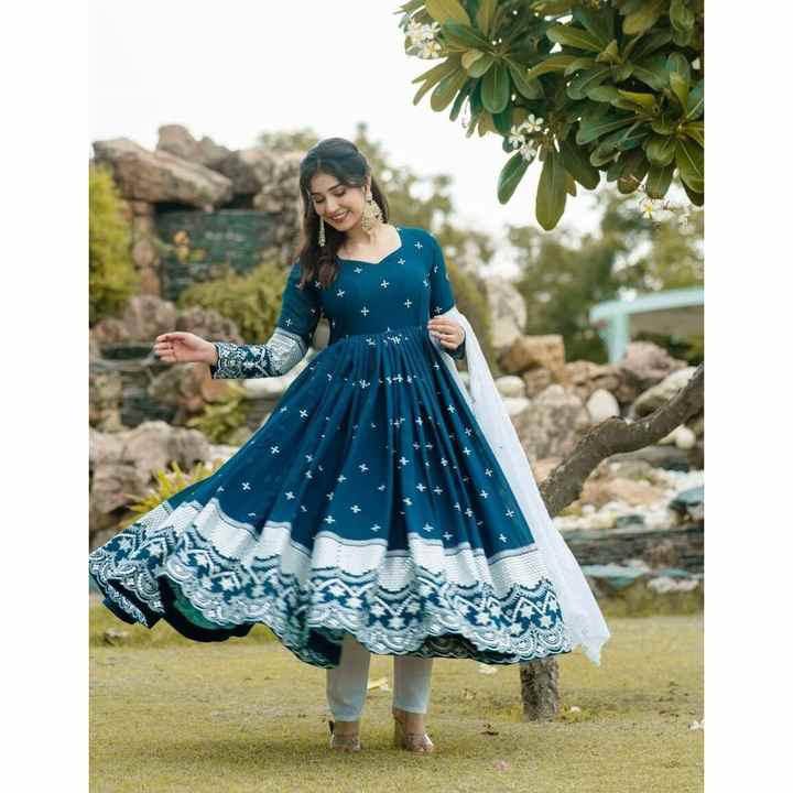 PANTALÓN BATA DE TRABAJO BORDADO GEORGETTE ATRACTIVA CON DUPATTA AZUL