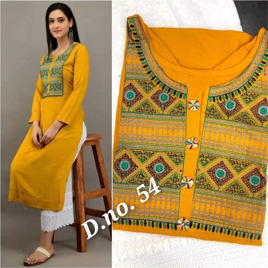 ATRACTIVO BORDADO DE RAYON TRABAJO KURTI CON PALAZZO AMARILLO