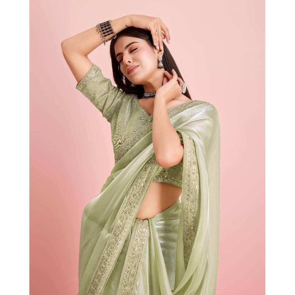 SECUENCIA BORDADA SECUENCIA DE SEDA ATRACTIVA CON CODIFICACIÓN TRABAJO SAREE CON BLUSA DESCOSADA PISTA