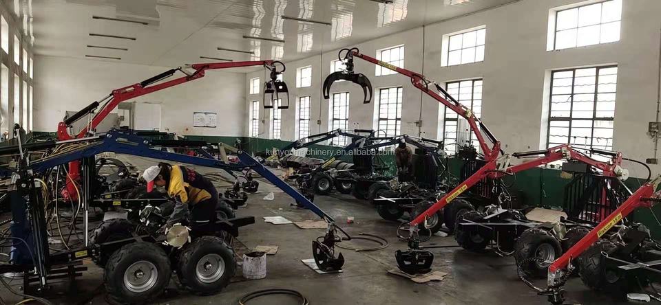 Remolque para Carga de Troncos para ATV, Remolque Pequeño para Madera y Forestal con Grúa y Garra para Acople a Tractor