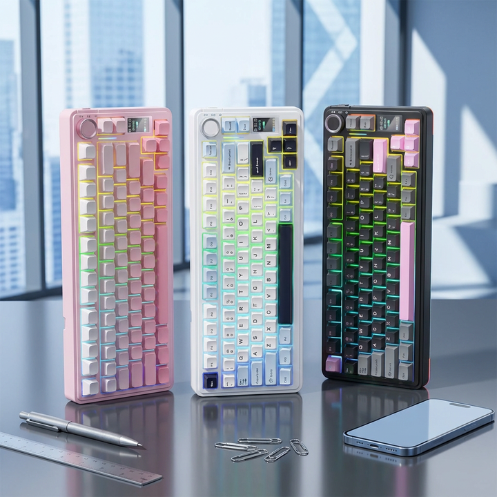 Teclado Mecánico AULA S75Pro Tri-Modo RGB Intercambiable en Caliente Inalámbrico 2.4Ghz USB-C con Perilla Personalizada para Jugadores y Accesorios de Escritorio Gaming