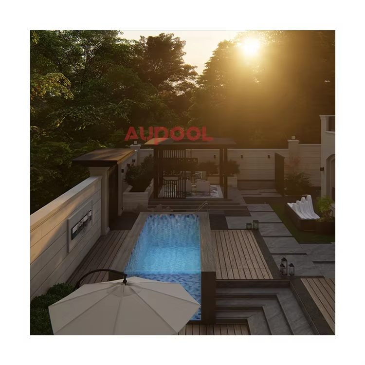 AUPOOL Estéreo Piscina transparente Serie 2000L Entrenador de contracorriente estándar Lado largo Piscina acrílica transparente