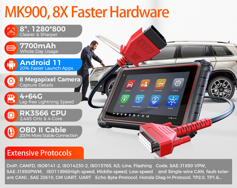 AUTEL MK900, Herramienta de Diagnóstico para Vehículos con Funciones de Prueba Activa y Cobertura de Sistemas a Nivel OE para Todos los Sistemas Electrónicos