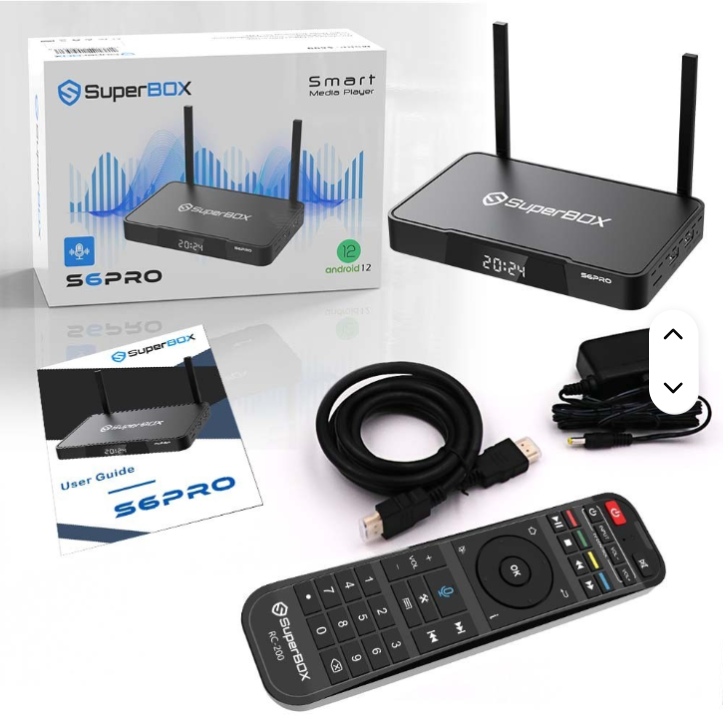 Reproductor Multimedia de Transmisión AUTHENTHIC SuperBoxx S6 Pro 4K UHD con Android 12 y Control Remoto por Voz