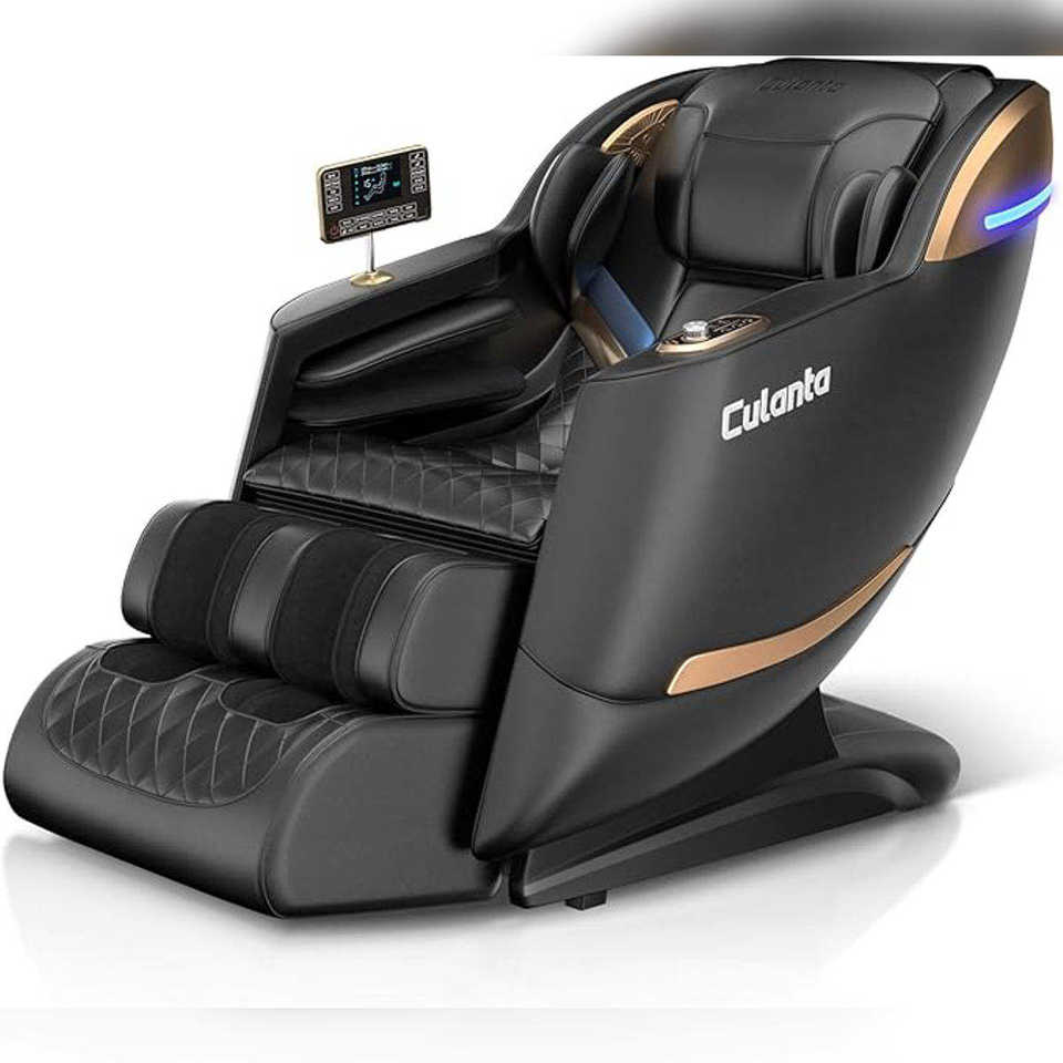 Sillón de Masaje Reclinable de Gravedad Cero de Cuerpo Completo Negro de Calidad AUTÉNTICA con Control por Voz con IA, Bluetooth, Yoga, Estiramiento y Calefacción