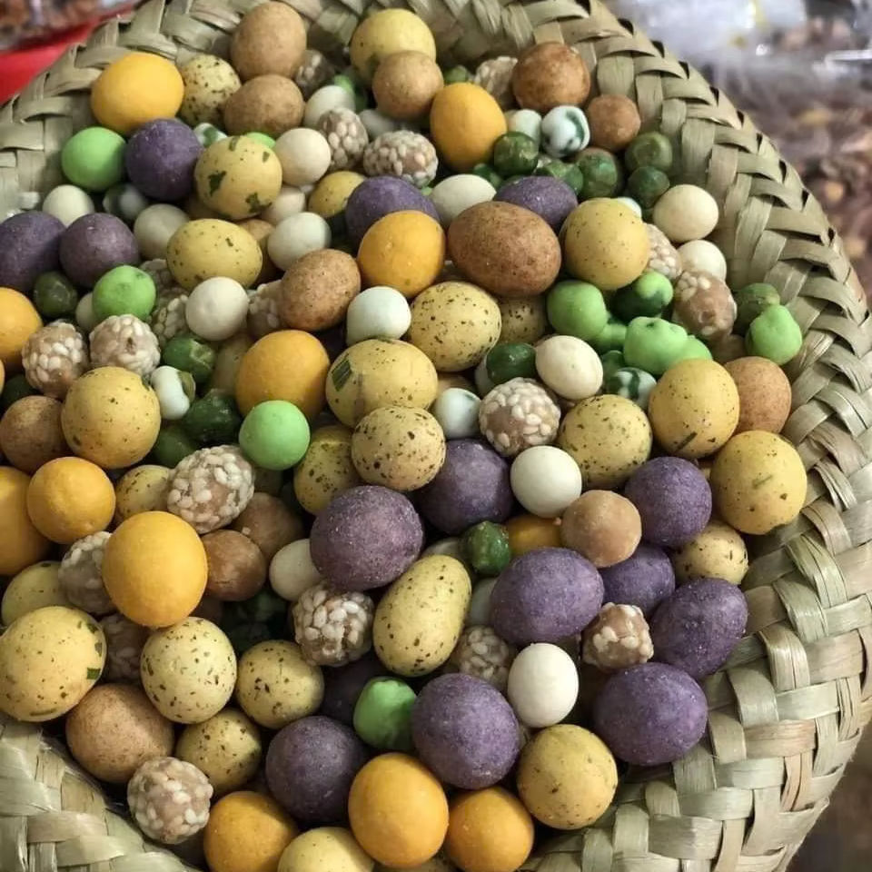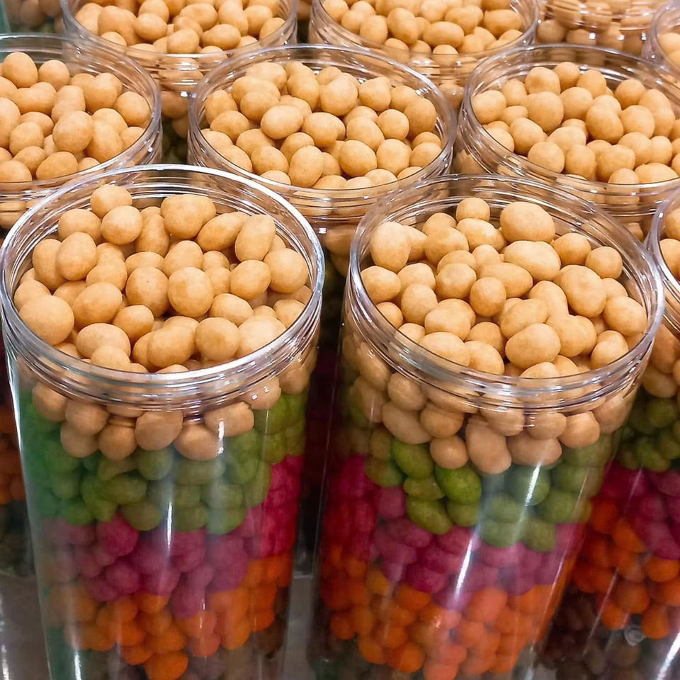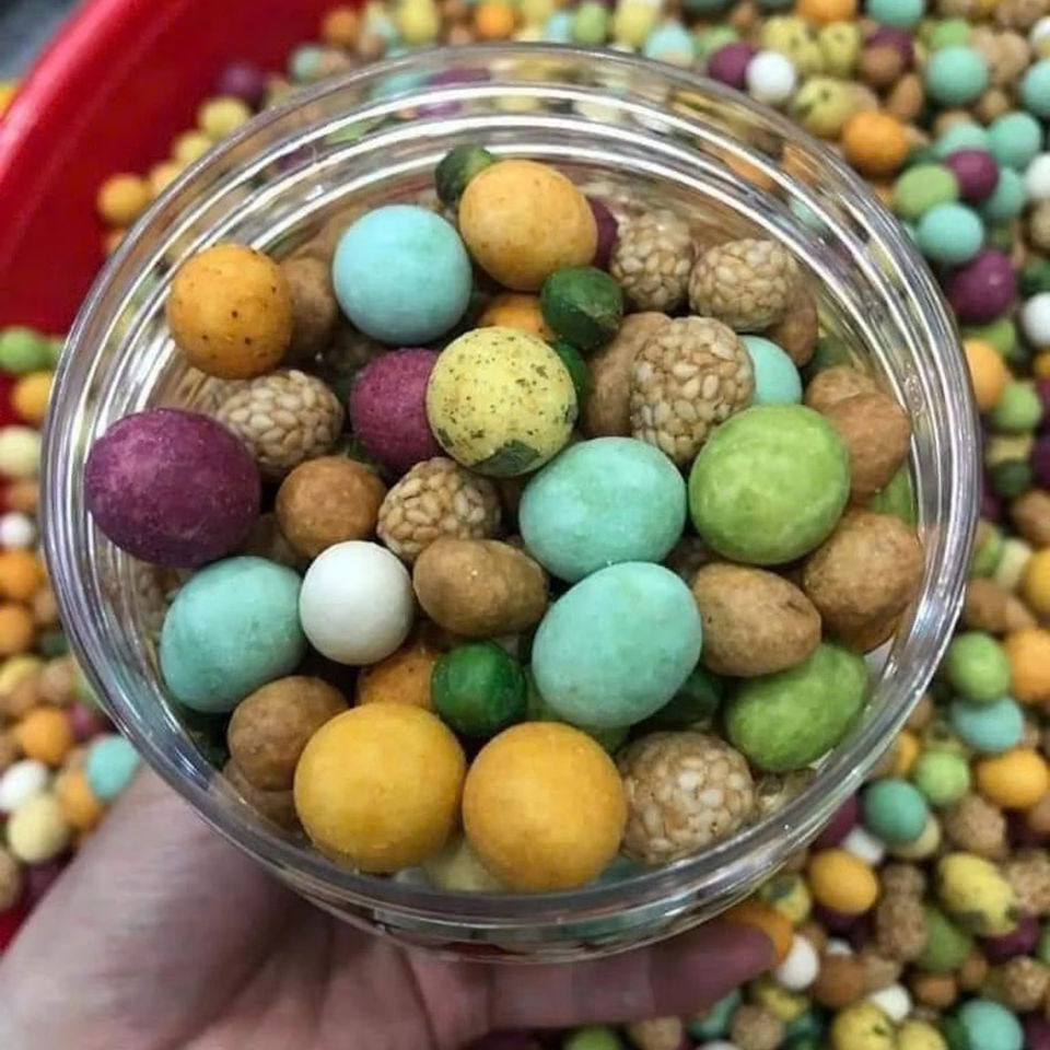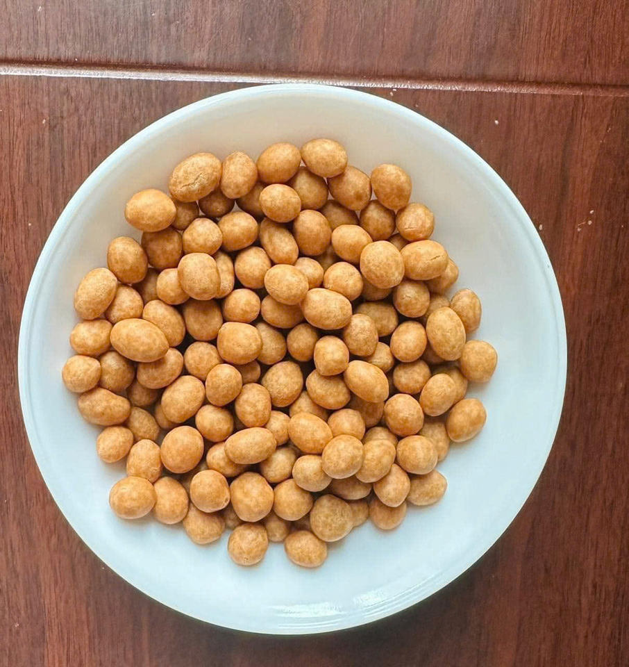 Contenido:Cacahuetes crujientes con leche de coco y sésamo recubierto