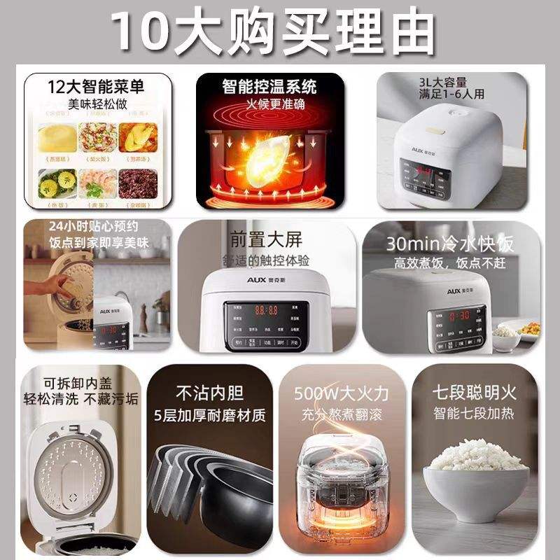Olla Arrocera Eléctrica Inteligente Multifuncional AUX de 3L Cuadrada con Función de Reserva, Blanca