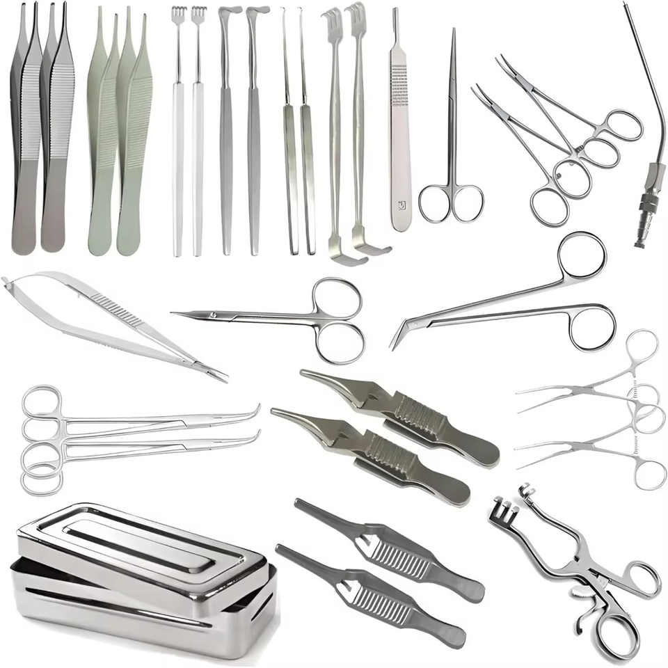 Juego de Instrumentos Quirúrgicos para Fístula Arteriovenosa, 30 Piezas, Instrumentos Vasculares Manuales de Acero Inoxidable para Cirugía Arteriovenosa