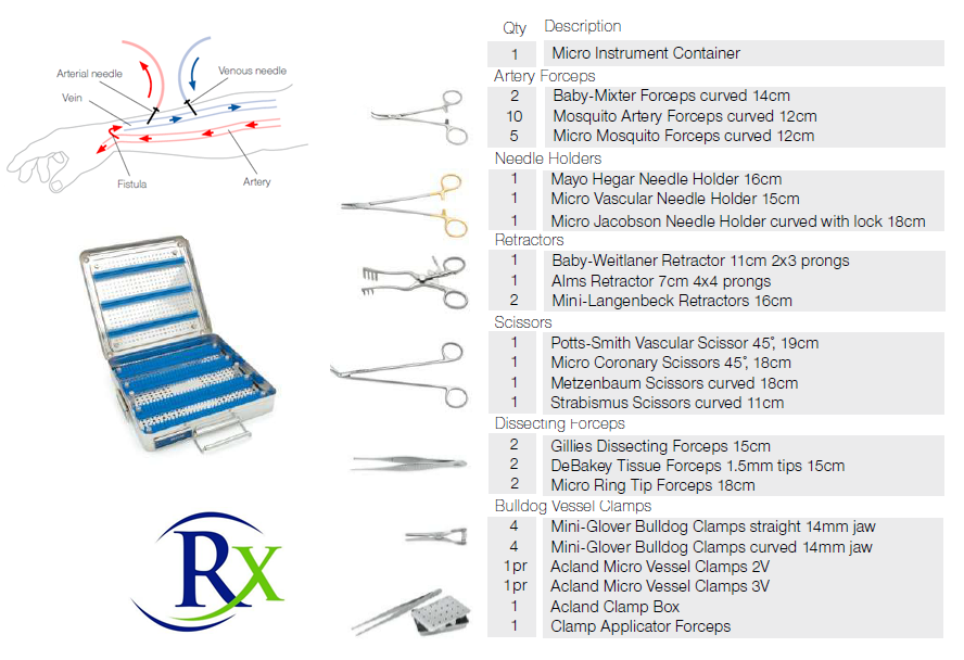 Juego de Instrumentos Quirúrgicos para Fístula Vascular Arteriovenosa