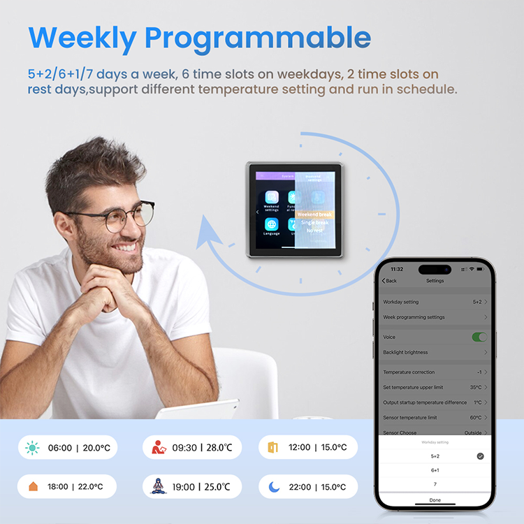 Termostato Inteligente WiFi Tuya AVATTO WT500 con Pantalla Táctil a Color de 4.0 Pulgadas, Personalizable OEM/ODM para Calefacción de Calderas Eléctricas/de Agua/Gas