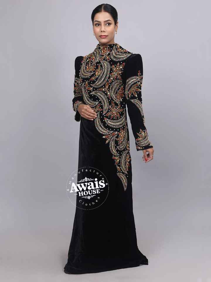 Caftán Abaya Islámico Modesto de Terciopelo AWAIS HOUSE - Cuello Alto, Manga Larga, Largo hasta el Suelo, Talla Grande, Estilo Marroquí, Hecho a Mano con Cuentas