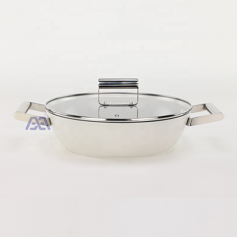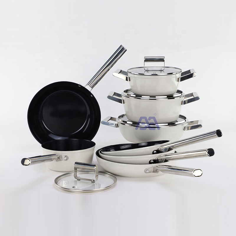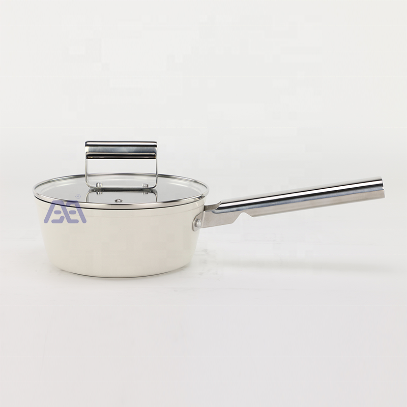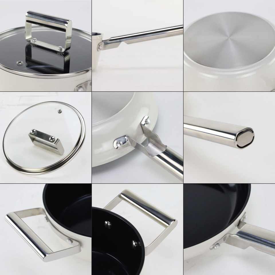 AXA Juego de utensilios de cocina de cerámica antiadherente de 8 piezas, juego de ollas y sartenes resistentes a los arañazos y aptos para inducción y lavavajillas con tapas de vidrio, blanco