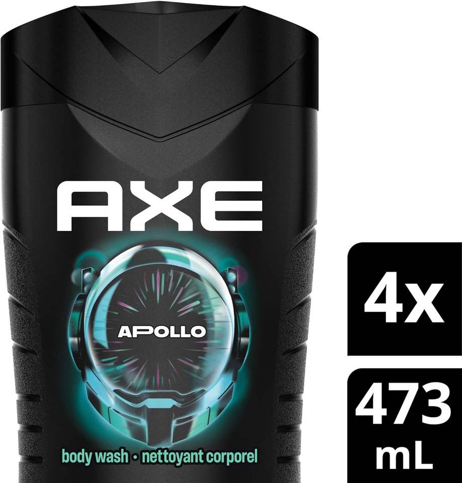 Gel de Ducha en Aerosol AXE Apollo para Frescura Duradera, Hierbas de Salvia y Cedro, Hidratantes 100% a Base de Plantas, 473 ml (Paquete de 4)