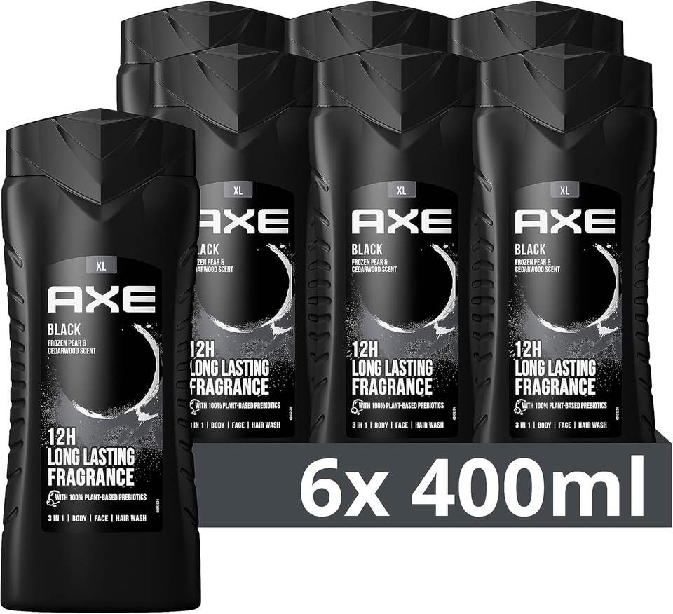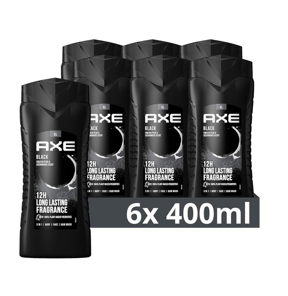 Desodorante en Aerosol AXE Black 3 en 1 Herbal 0% Alcohol Unisex, Gel de Ducha, hasta 12 Horas de Protección, Paquete Económico de 6 x 400 ml