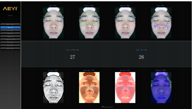 Diagnosticar:Punto, poro, pigmentación, acné, Wrikle,etc.