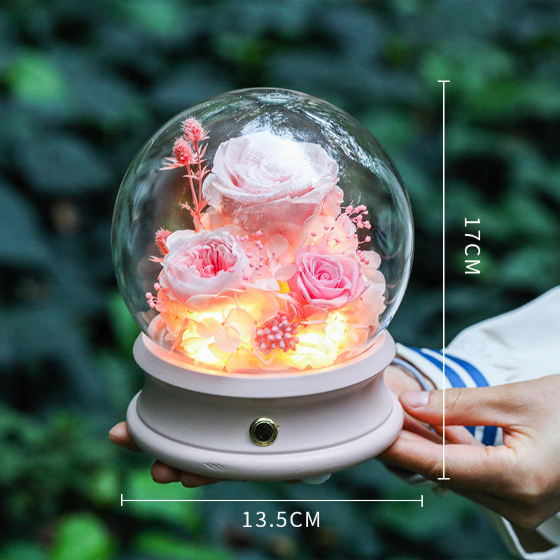 AYOYO-funda de cristal de flor eterna, Bola de música Bluetooth, regalo de Navidad de San Valentín, rosa, OEM