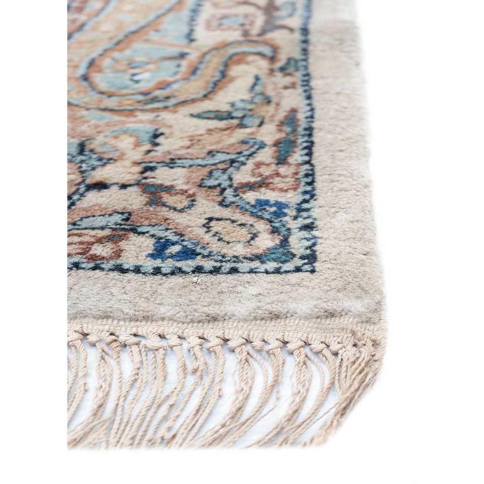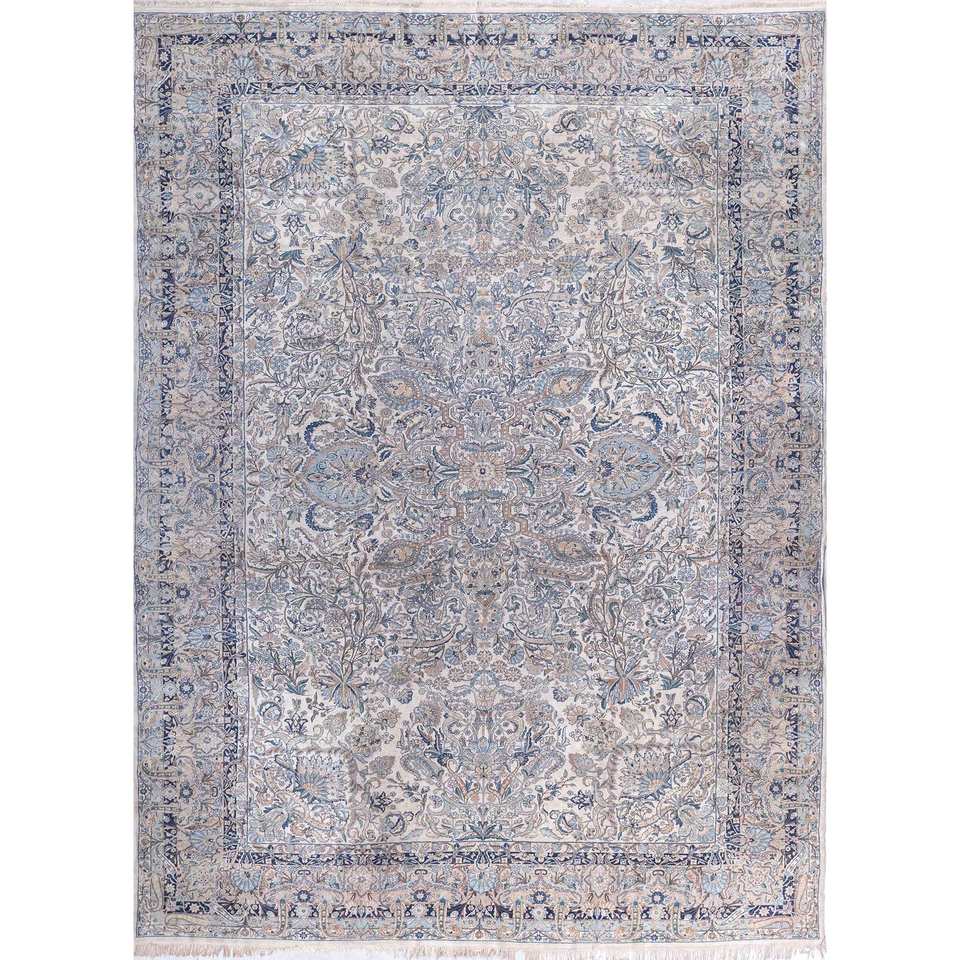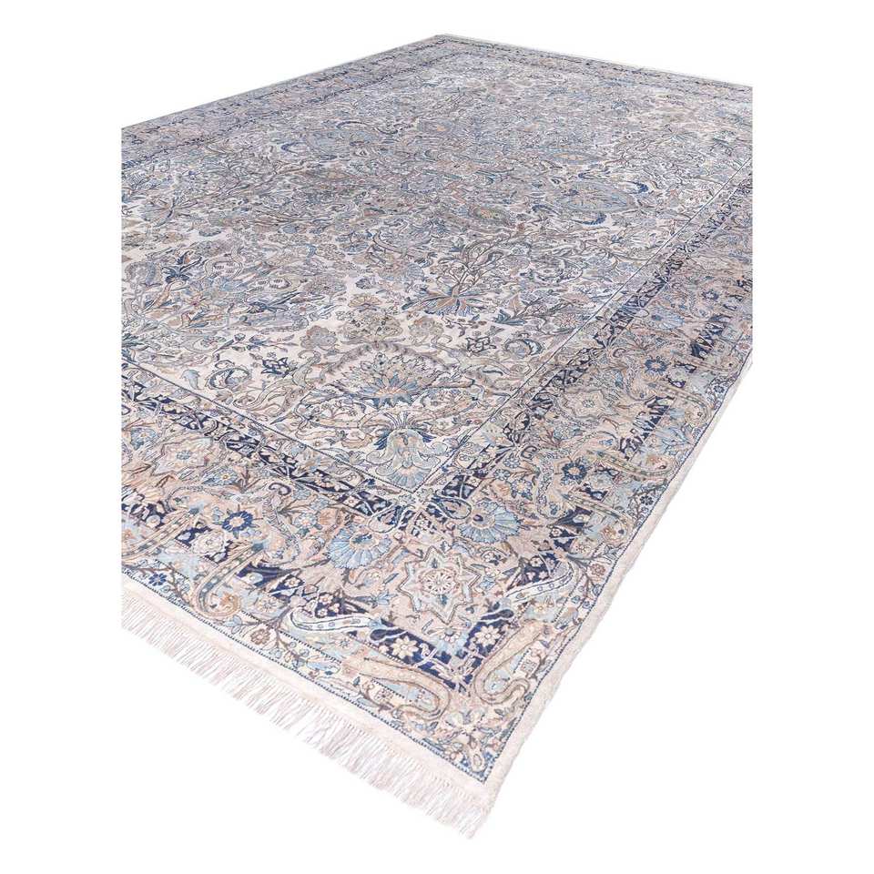 Alfombra de Lana Azul Anudada a Mano Aalam Pae-5786 9x12 Rectangular con Patrón de Medallón para Decoración de Sala de Estar o Uso en Pasillos