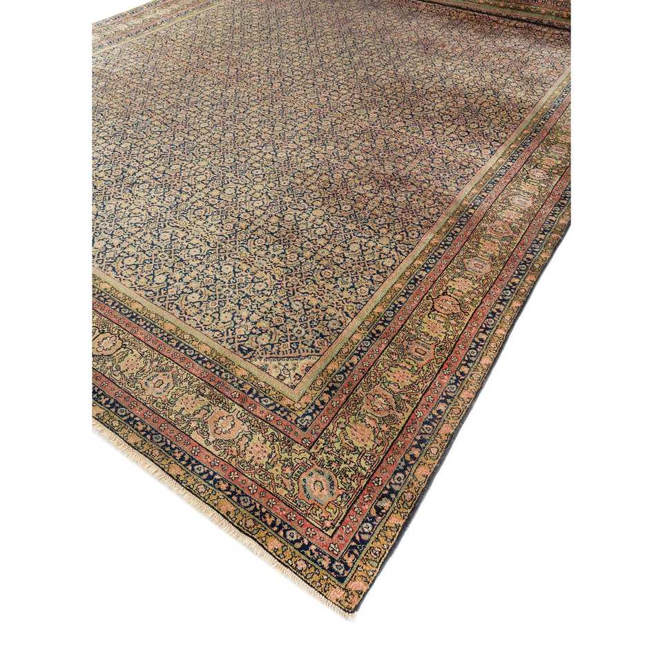 Alfombra de Lana Azul Aalam Anudada a Mano con Patrón Floral y Abstracto para Entrada del Hogar, Rectangular de 9x12 para Adolescentes - Paem-1526