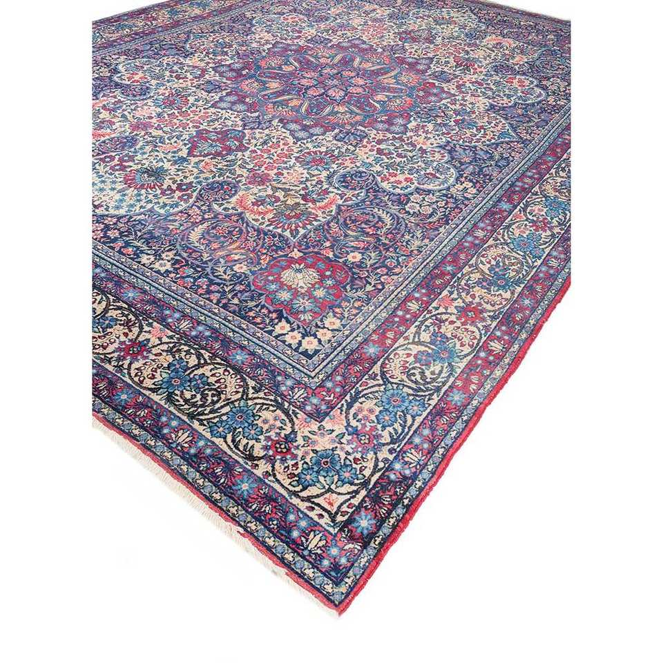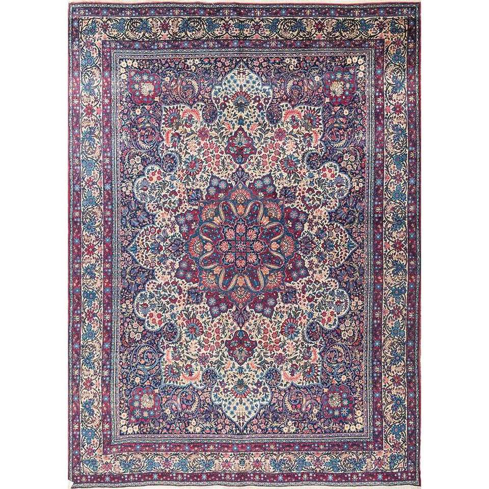 Alfombra de Lana Azul Anudada a Mano Aalam Paem-461 9x12 Rectangular con Patrón de Medallón para Decoración de Sala de Estar o Pasillo