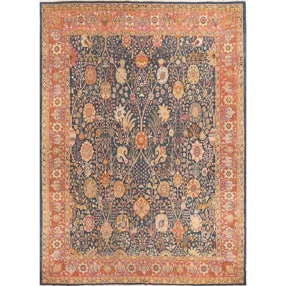 Alfombras de Lana Anudadas a Mano Aalam Azules con Diseño Floral Oriental para el Hogar, Sala de Estar, Dormitorio, Pasillo, Hechas a Mano, Forma Rectangular, para Adolescentes
