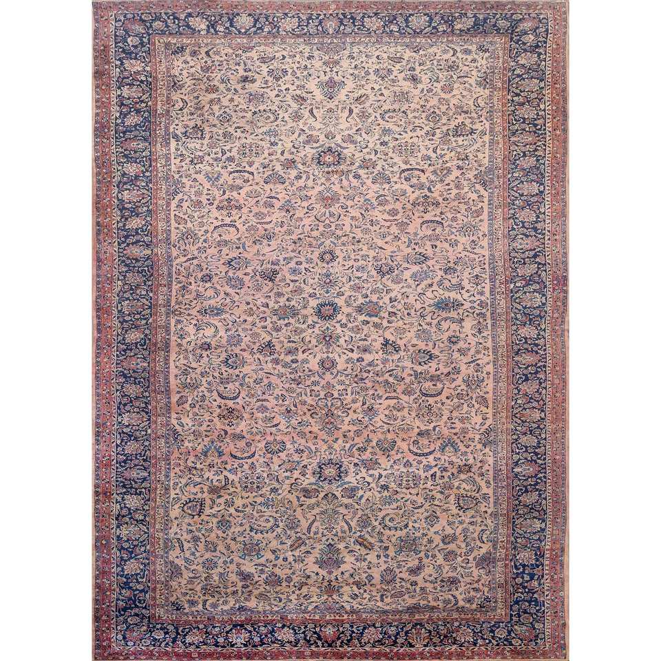 Alfombra de Lana Azul Aalam Anudada a Mano con Patrón Floral y Abstracto para Entrada, Dormitorio o Pasillo - Pae-6381