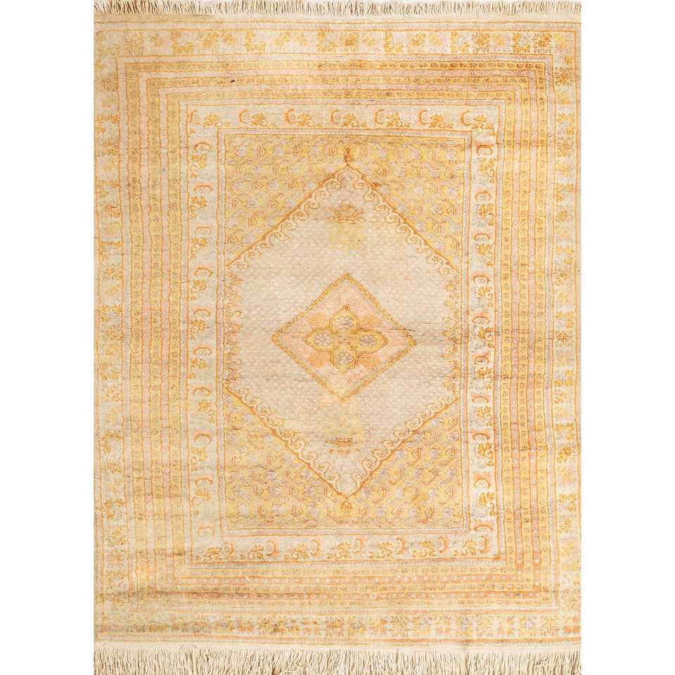 Alfombra de Lana Anudada a Mano Aalam Gold, Modelo Pae-4901, Rectangular 9x12, Diseño de Medallón, para Pasillo, Entrada, Hogar, Alfombras Jaipur US