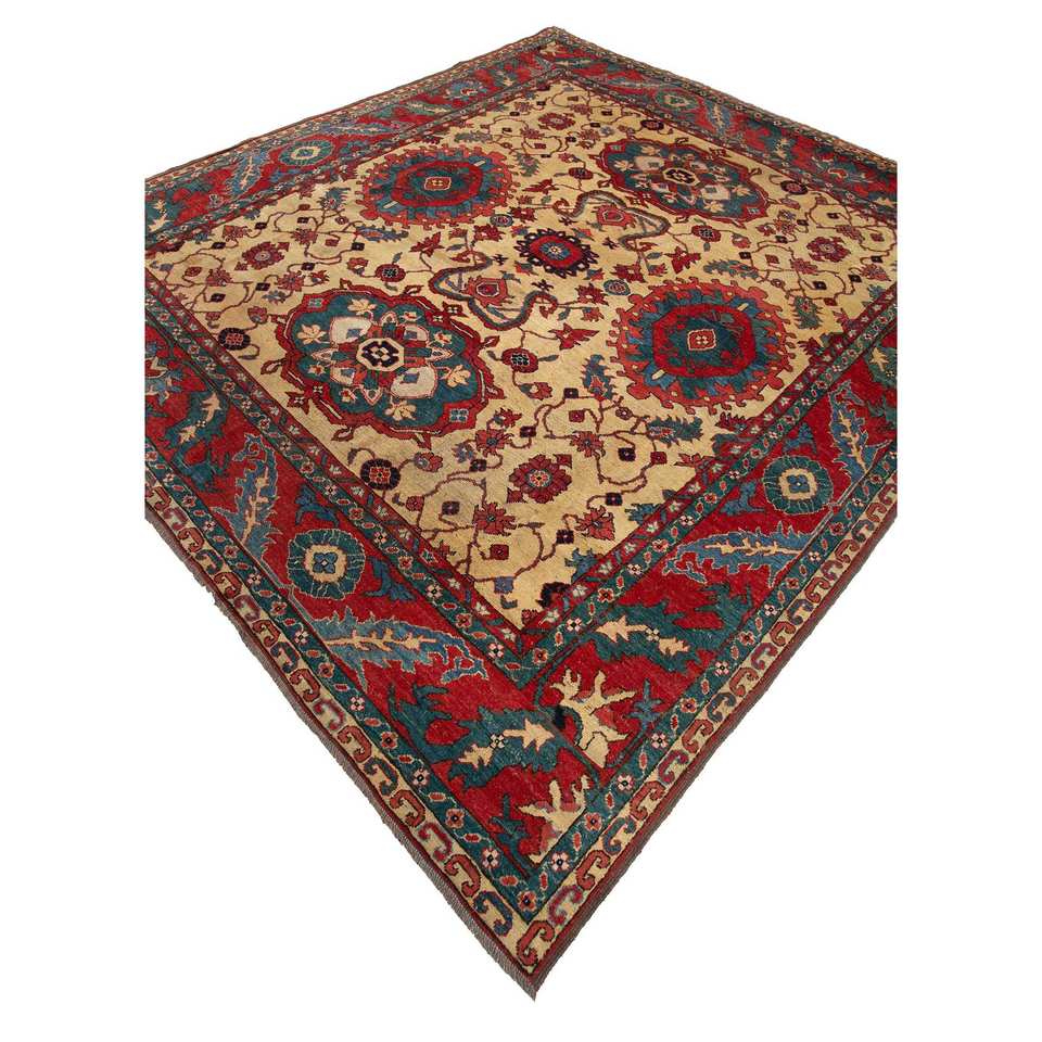 Alfombras de Lana Anudadas a Mano Aalam Gold Pae-5110, Alfombras Clásicas de Alta Calidad para el Hogar, para Sala de Estar, Dormitorio, Pasillo, Medallón Cuadrado, Rectángulo