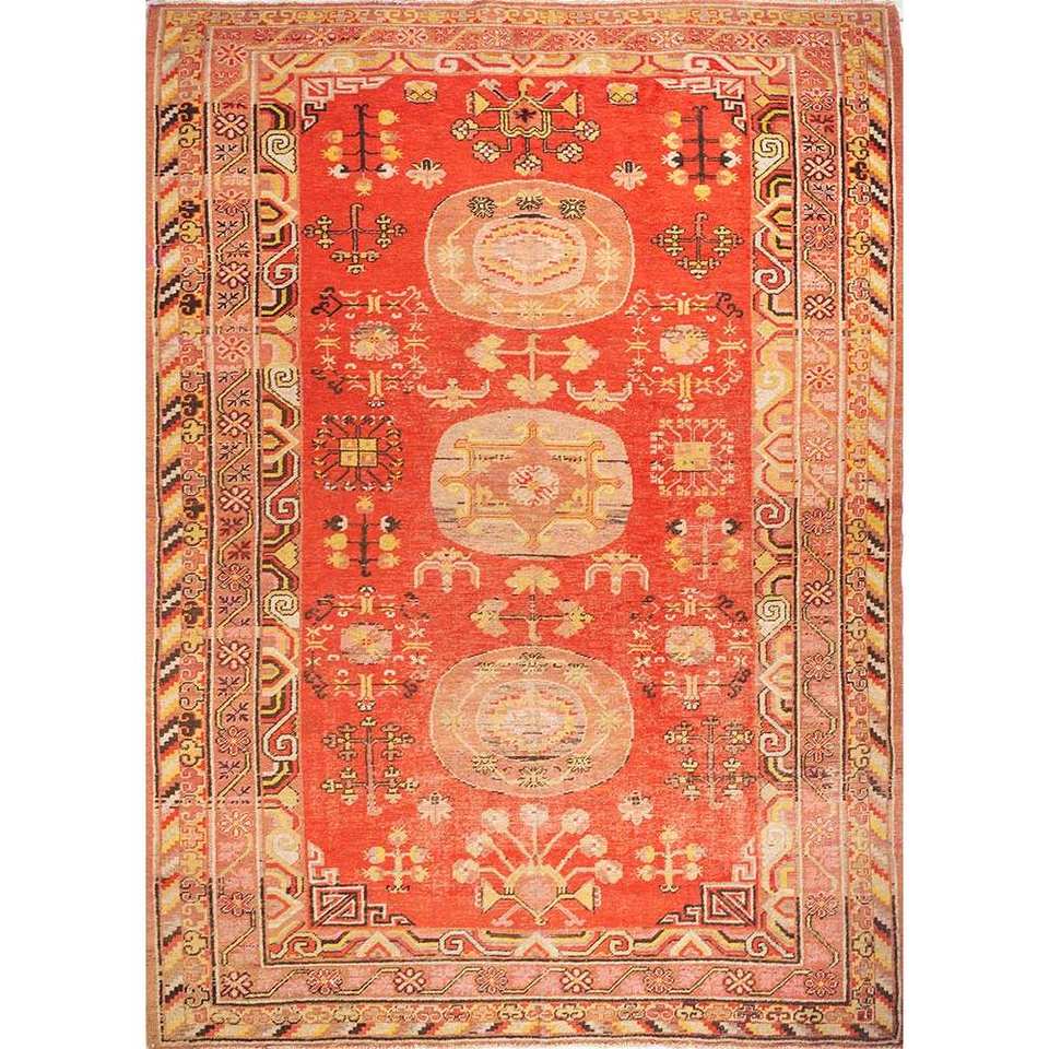 Alfombras de Lana Anudadas a Mano Aalam, Rectangulares, con Medallón Rojo Naranja y Patrones Abstractos para Uso Doméstico - Paem-158 para Sala de Estar y Dormitorio, 9x12 Pulgadas