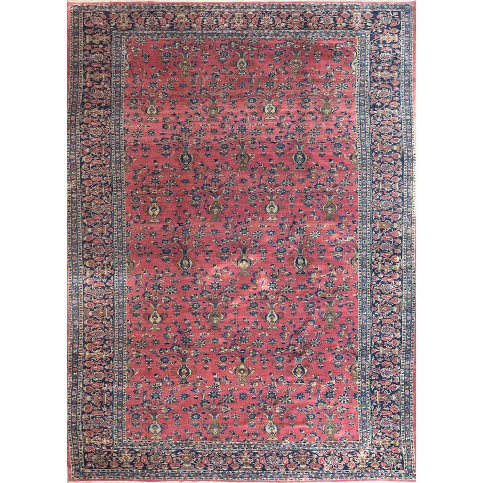 Alfombras de Lana Anudadas a Mano Aalam, Diseño Floral y Abstracto en Rojo y Naranja, Rectangulares de 9x12, para Entrada y Sala de Estar, Pae-4988