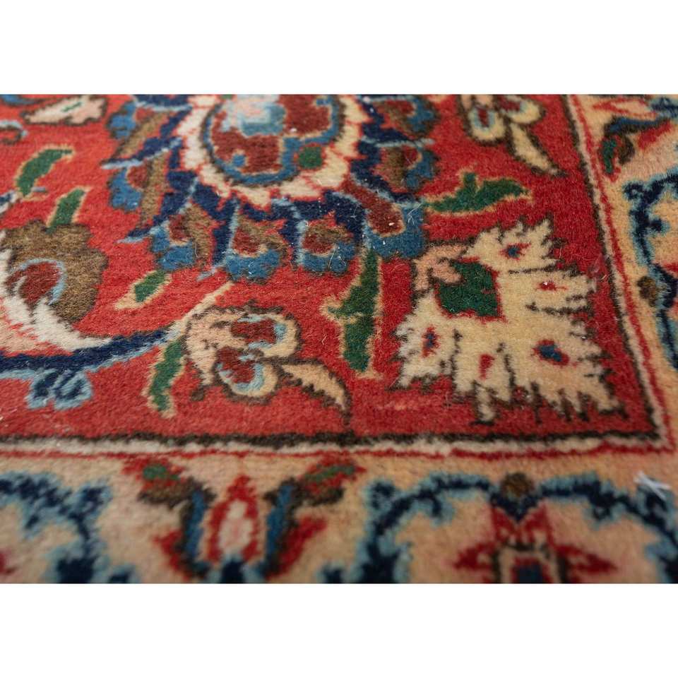 Alfombra de Lana Anudada a Mano Aalam, Diseño Floral y Abstracto en Rojo y Naranja, Rectangular de 9x12, para Entrada del Hogar, Modelo Pae-5677