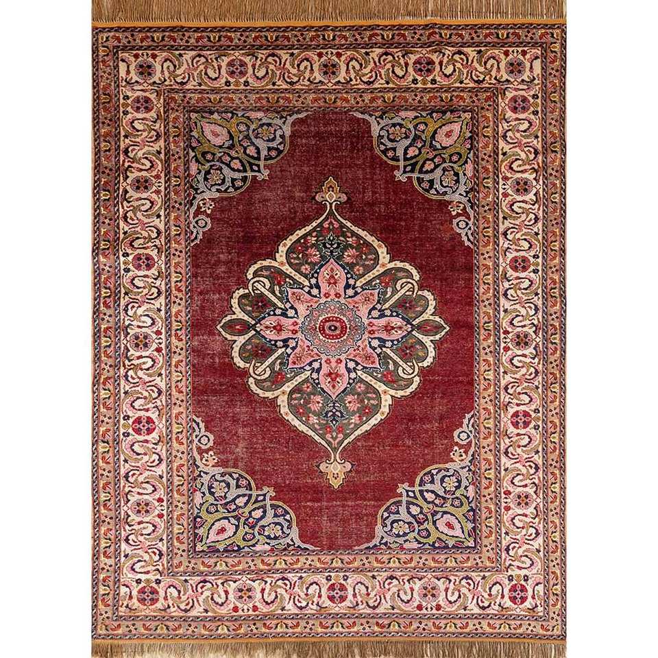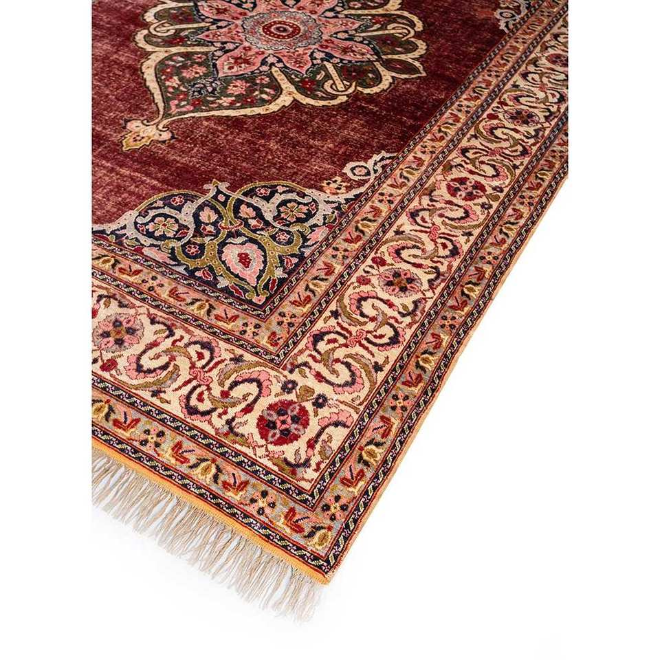 Alfombra de Lana Anudada a Mano Aalam, Diseño de Medallón Rojo Naranja, Kilim Rectangular de 9x12, Abstracta, Hecha a Mano para Adolescentes, para Entrada o Pasillo