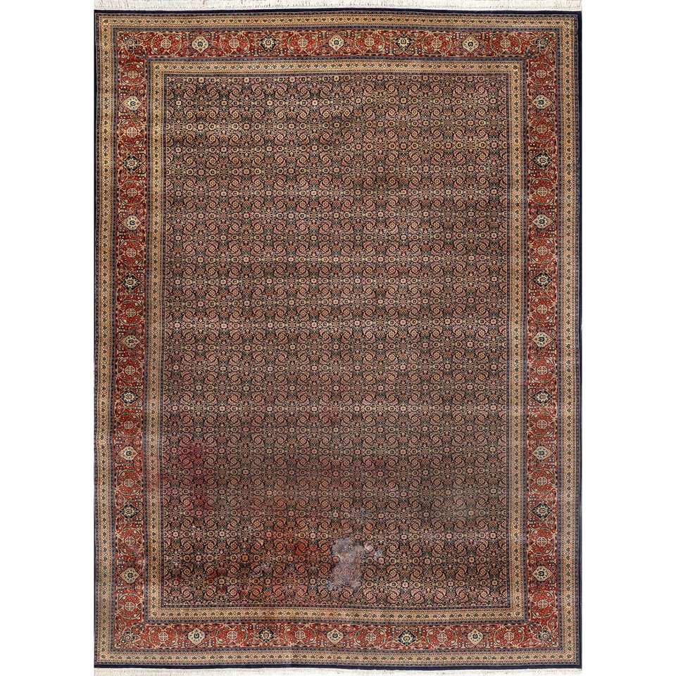 Alfombras de Lana Anudadas a Mano Aalam, Diseño Floral y Abstracto en Rojo y Naranja, Rectangulares de 9x12, para Entrada y Sala de Estar, Pae-5466