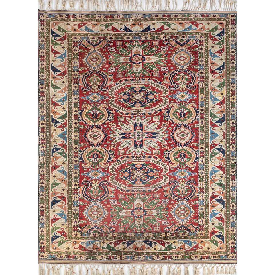 Alfombra de Lana Anudada a Mano Aalam, Diseño de Medallón Rojo Naranja, Rectangular Grande de 9x12, para Sala de Estar, Producto Nuevo - Pae-5637