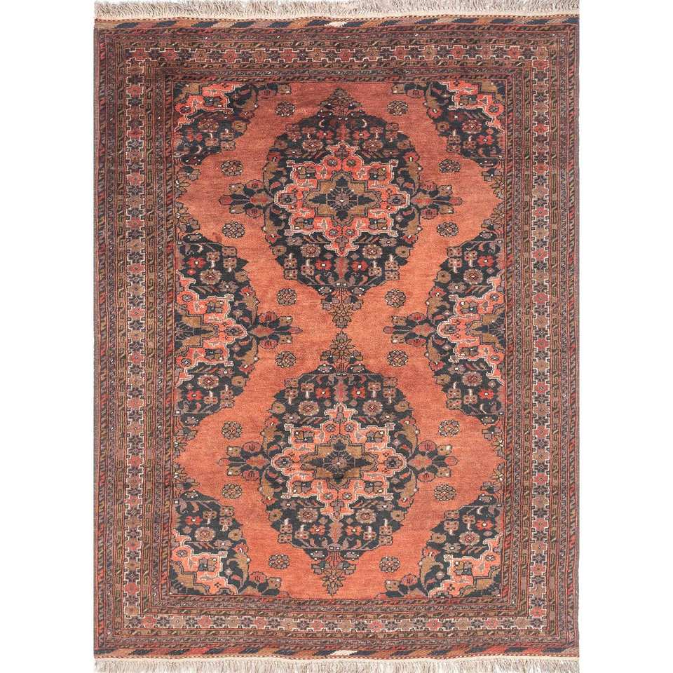 Alfombras de Lana Anudadas a Mano Aalam, Rectangulares, con Medallón Rojo Naranja y Patrones Abstractos para el Hogar -Pae-5587 para Sala de Estar y Dormitorio, 9x12 Pulgadas