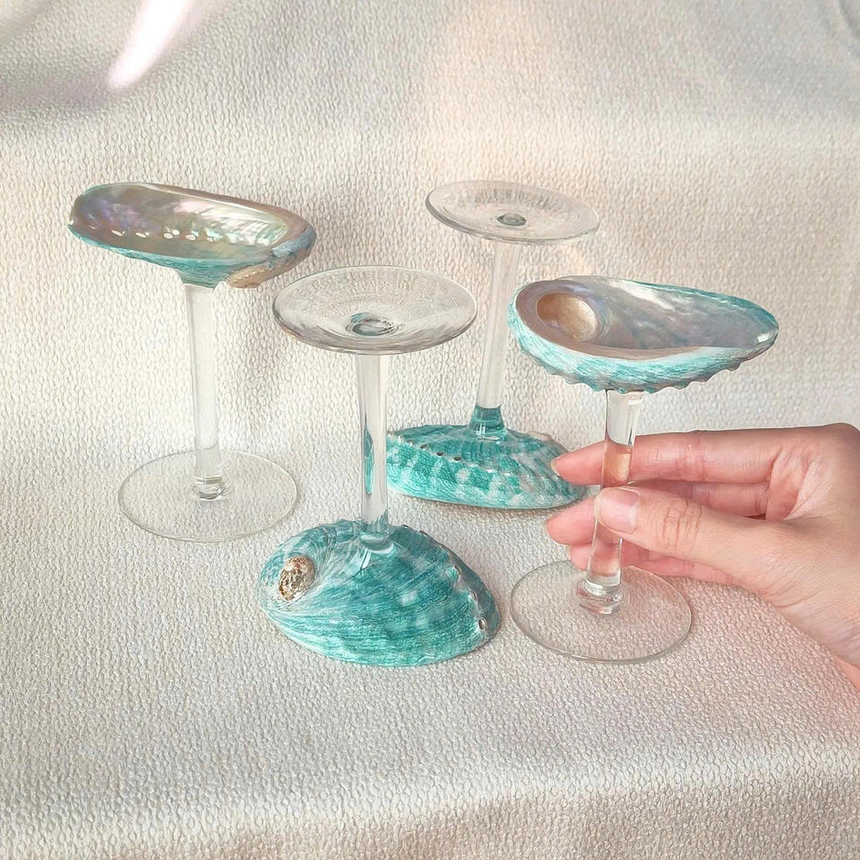 Copa de Vino de Concha de Abulón Hecha a Mano, Copa de Cóctel de Concha Marina Natural, Copa de Champán Ecológica para Decoración de Bodas y Fiestas