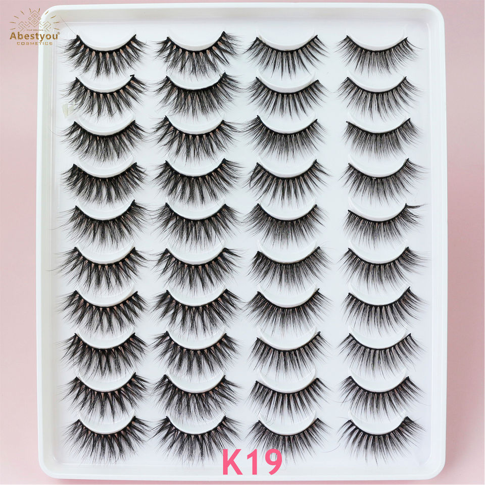 Abestyou, pestañas postizas hechas a mano 3D de alta calidad, tira completa, estilo Natural, visón de imitación, banda de algodón negro, pelusa esponjosa y falsa