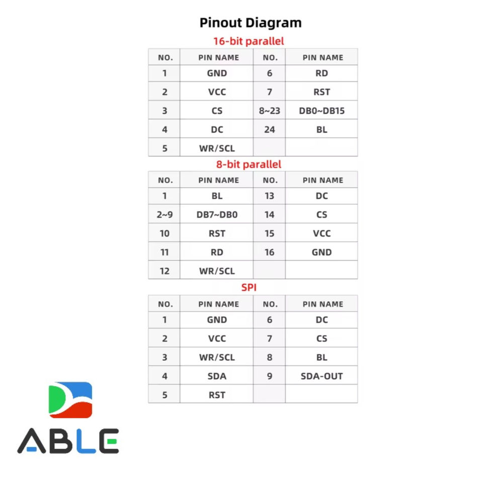 Interfaz de visualización:SPI de 4 hilos, paralelo de 8/16 bits